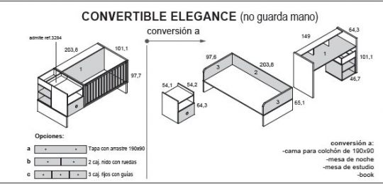 CUNA CONVERTIBLE MOD: ELEGANCE -( COLCHON 140X70) PVP: " DESDE " 878 €