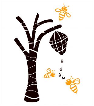 Vinilo de un árbol con panales de abejas, en negro y amarillo para decorar paredes y muebles.Muy sencillo de colcora es AUTOADHESIVO.