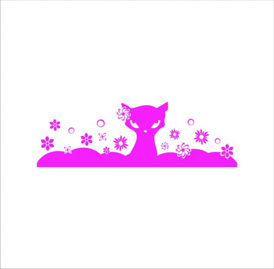 Vinilo fuxia de una gatita rodeada de flores para decorar paredes y muebles de 140*60cm.Muy fácil de colocar es AUTOADHESIVO.