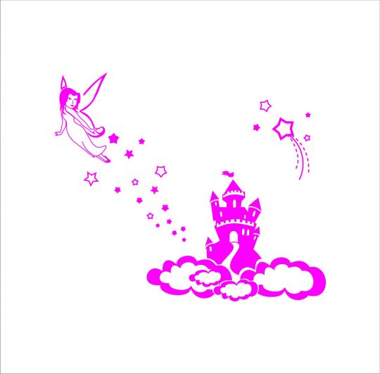 Vinilo fuxia de un hada y un castillo para decorar paredes y muebles de 130*90cm.Muy fácil de colocar es AUTOADHESIVO.