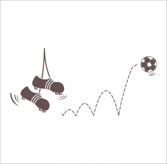 Vinilo gris de unas botas de fútbol con un balón para decorar paredes y muebles de 140*60cm.Muy fácil de colocar es AUTOADHESIVO.