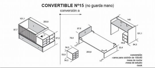 CONJUNTO CUNA CONVERTIBLE COLCHON DE 140X170 ( HASTA 3-4 AÑOS).