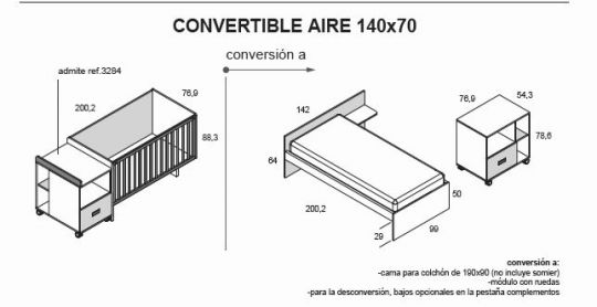 CUNA CONVERTIBLE MOD: AIRE - MODULO CONTENEDOR ( COLCHON 140X70) PVP: 590 €