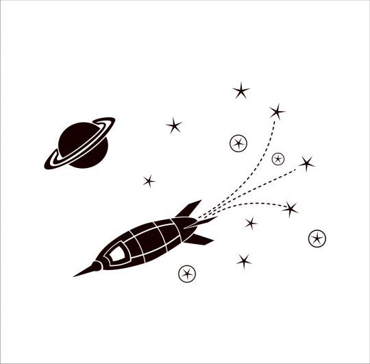 Vinilo en negro de planetas y nave espacial para decorar paredes y muebles de 140*80cm.Muy fácil de colocar es AUTOADHESIVO.