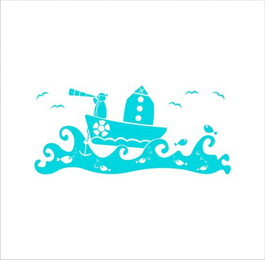 Vinilo azul de un barco navegando para decorar paredes y muebles de 130*60cm.Muy fácil de colocar es AUTOADHESIVO.