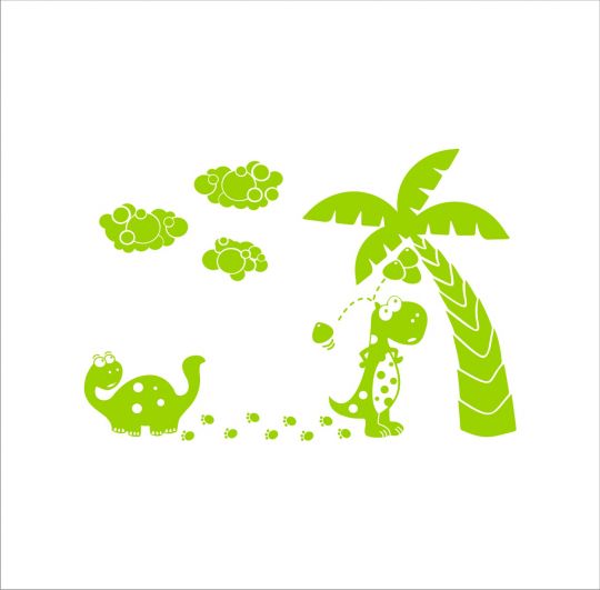 Vinilo verde de unos dinosaurios bajo una palmera para decorar paredes y muebles de 120*80cm.Es muy fácil de colocar AUTOADHESIVO.