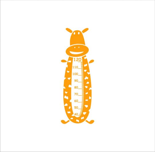 Medidor de vinilo naranja con una vaca, para decorar paredes y muebles de 145*60cm.Muy fácil de colocar es AUTOADHESIVO.
