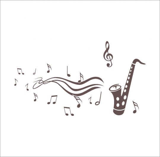 Vinilo gris de un saxofón junto a un pentagrama y notas musicales para decorar paredes y muebles de 160*80cm.Muy fácil de colocar es AUTOADHESIVO.