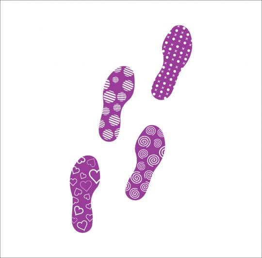 Vinilo morado de pisadas de zapatos para decorar paredes y muebles de 180*100cm.Muy fácil de colocar es AUTOADHESIVO.